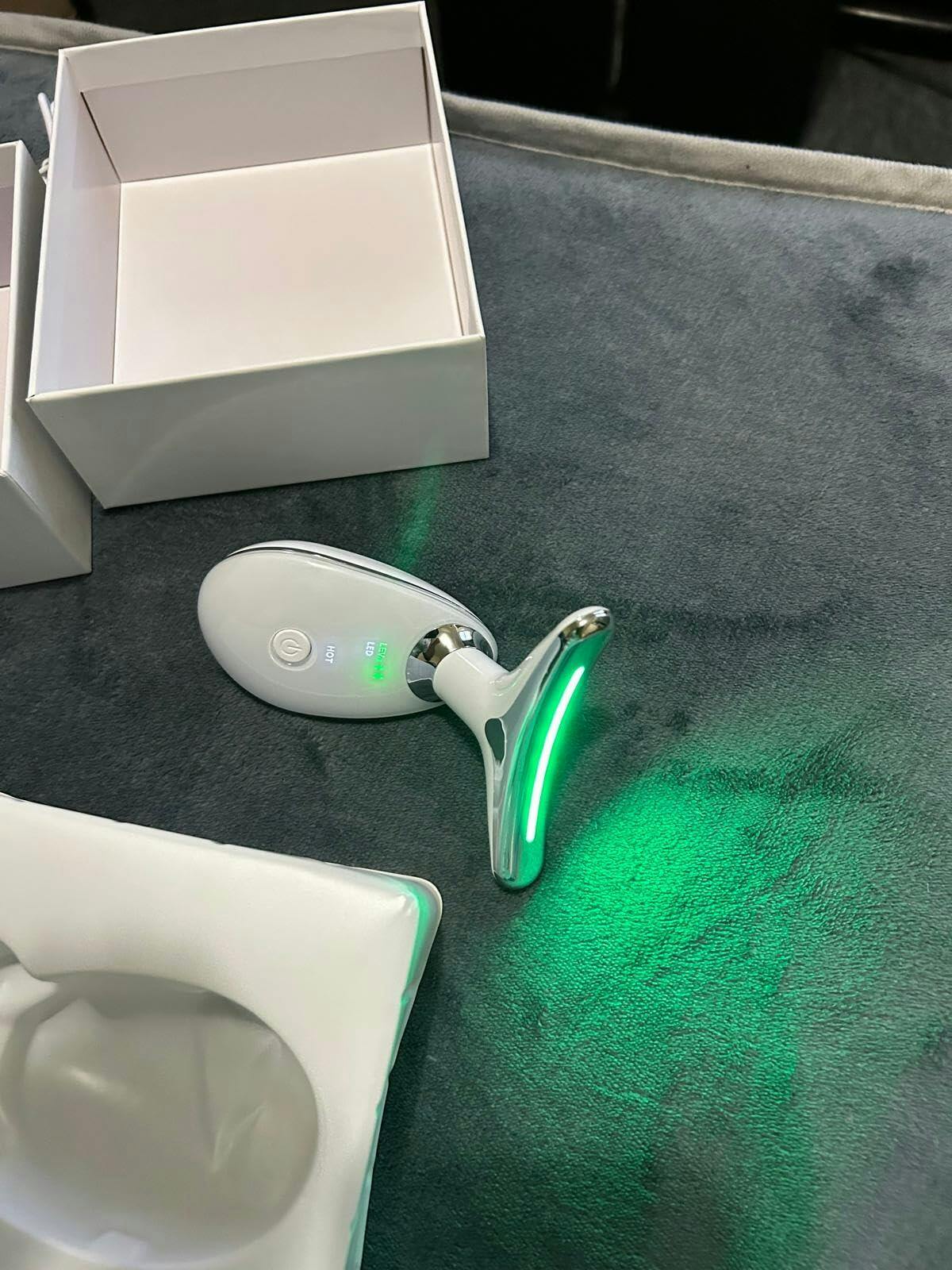 LED-powered therapy that tightens, tones, and transforms—while your chai brews.”