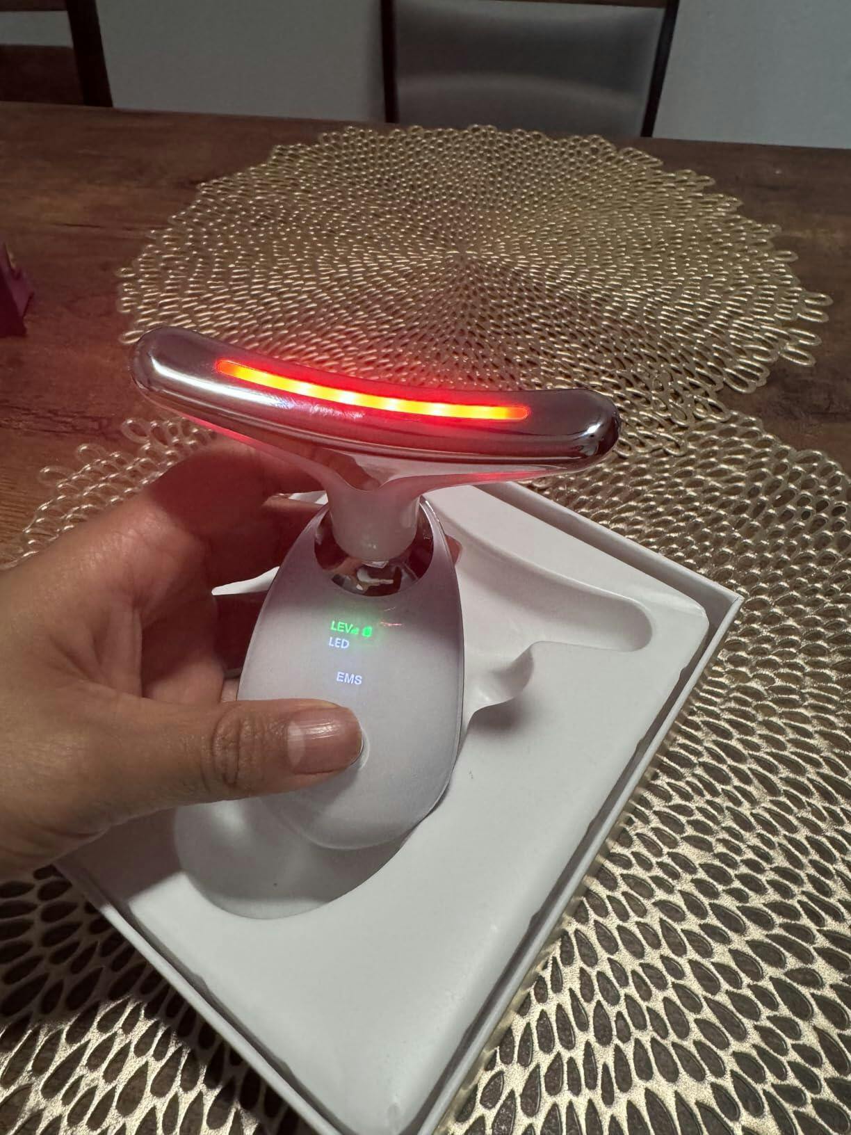 I can’t believe this actually works and for the price that it is. I actually notice a difference after I use this. When I wake up in the morning my face can be puffy or kinda haggard looking… I first used it in the morning to help soften that up and it did help. Then I started using it every night before bed — I do the green EMS and then the red HOT settings — and I wake up without the puffy / haggard apply in the first place. My kids also love using it for whatever weird reason lol — my son asked for one for his upcoming birthday 😂